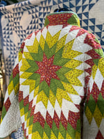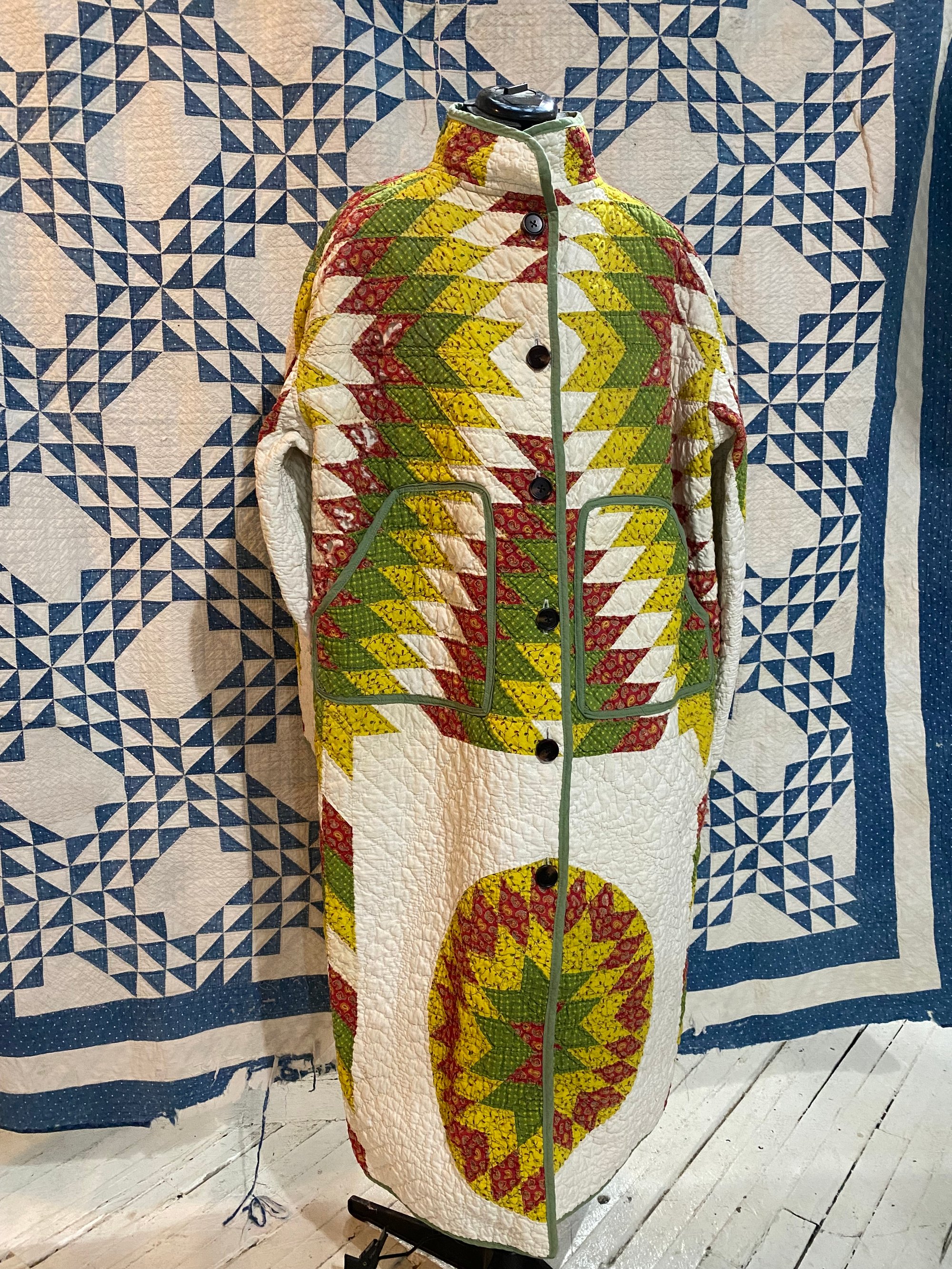 All of our coats are made from vintage or antique quilts and blankets, and are 100% hand made by me in Minneapolis. That means most of these textiles are not perfect, and we like it that way! These coats are wearable art! They all have small character flaws, possible stains, rips etc.