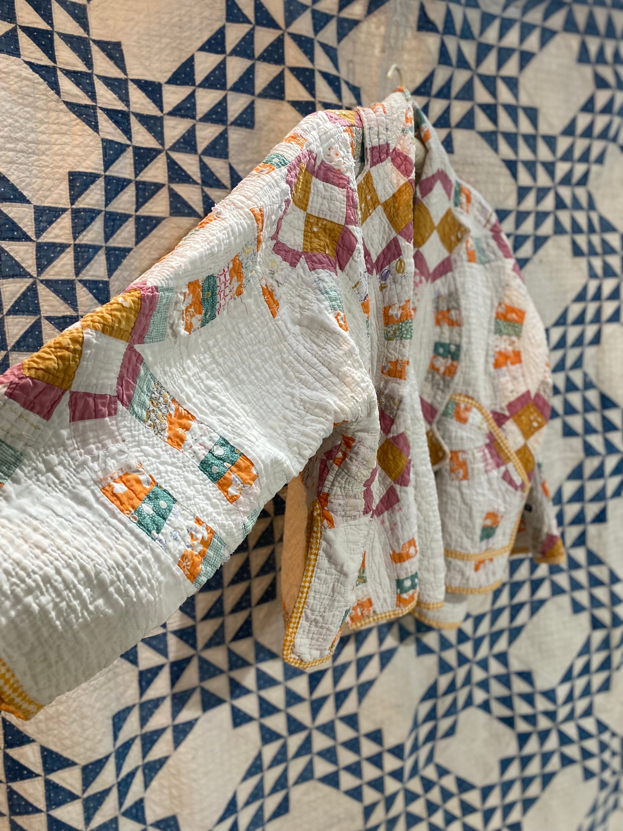Crafted from a vintage handmade, hand stitched quilt, there are years of love in this handmade work of art.